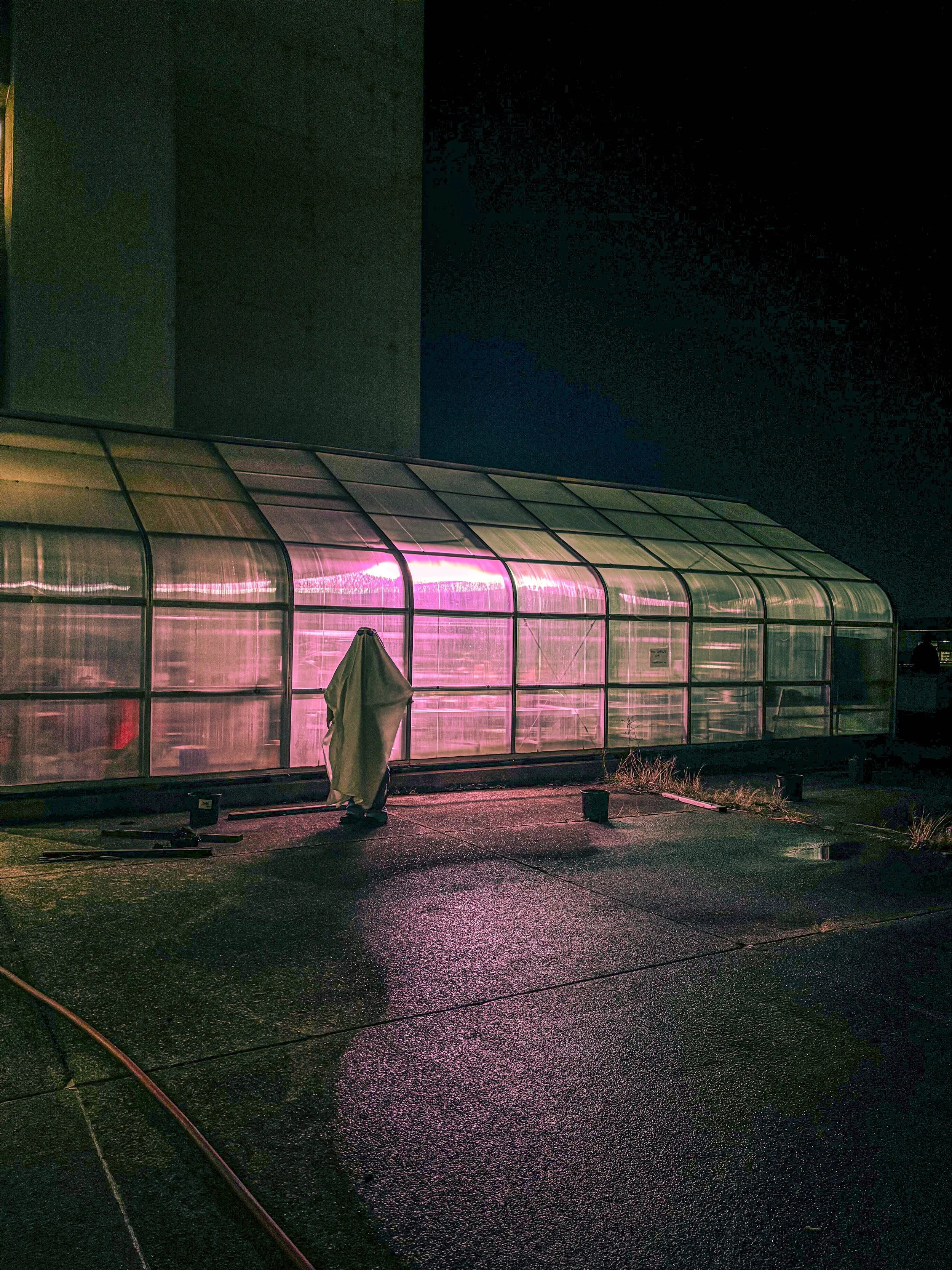 I wanted to explore bringing vibrant color into eerie settings and experiment with my subject, being me. In a world where we are all connected in mysterious and inexplicable ways, I still find a way to be lonely with my thoughts. I navigate wanting to both be alone and at peace with myself while also wanting human connection.